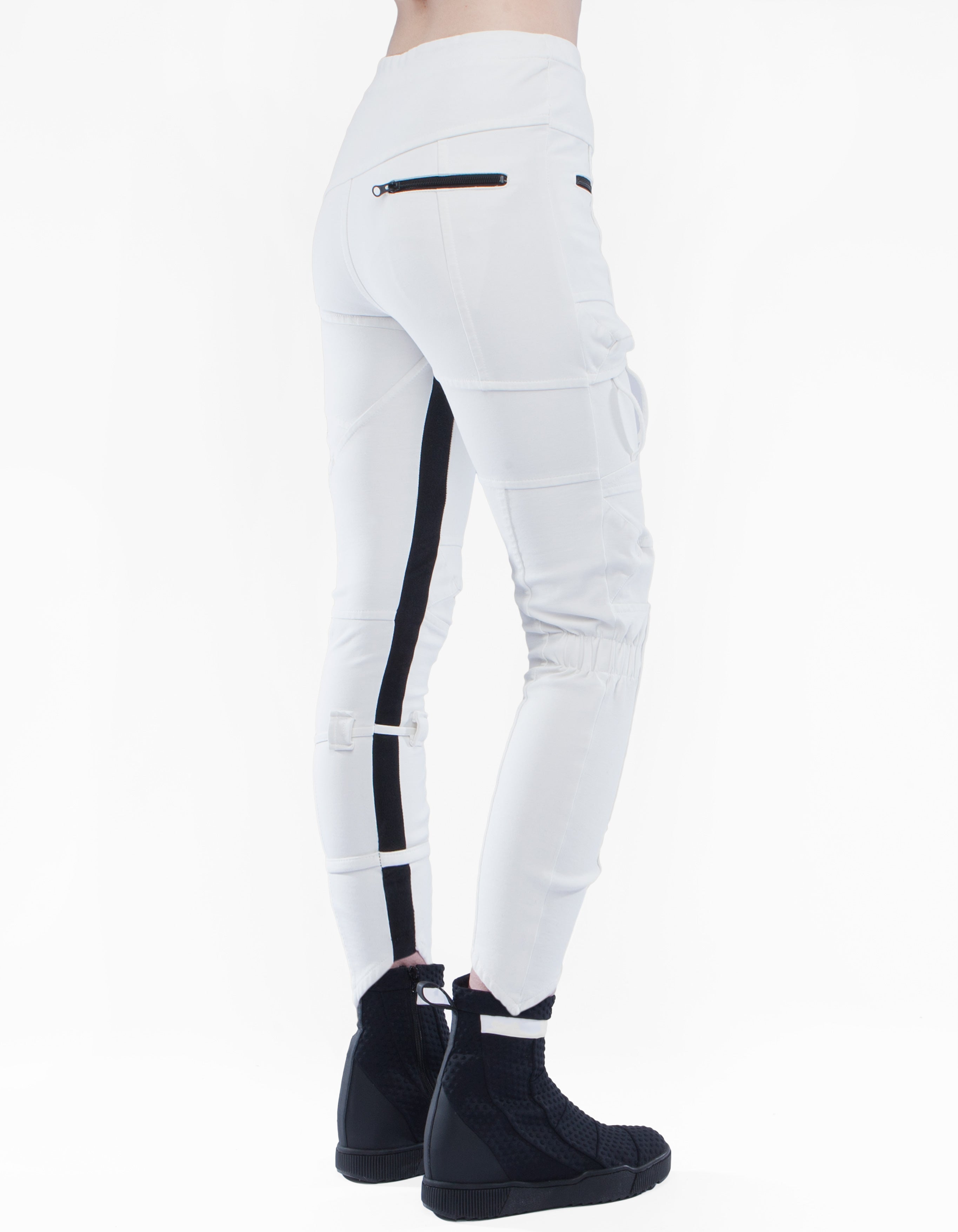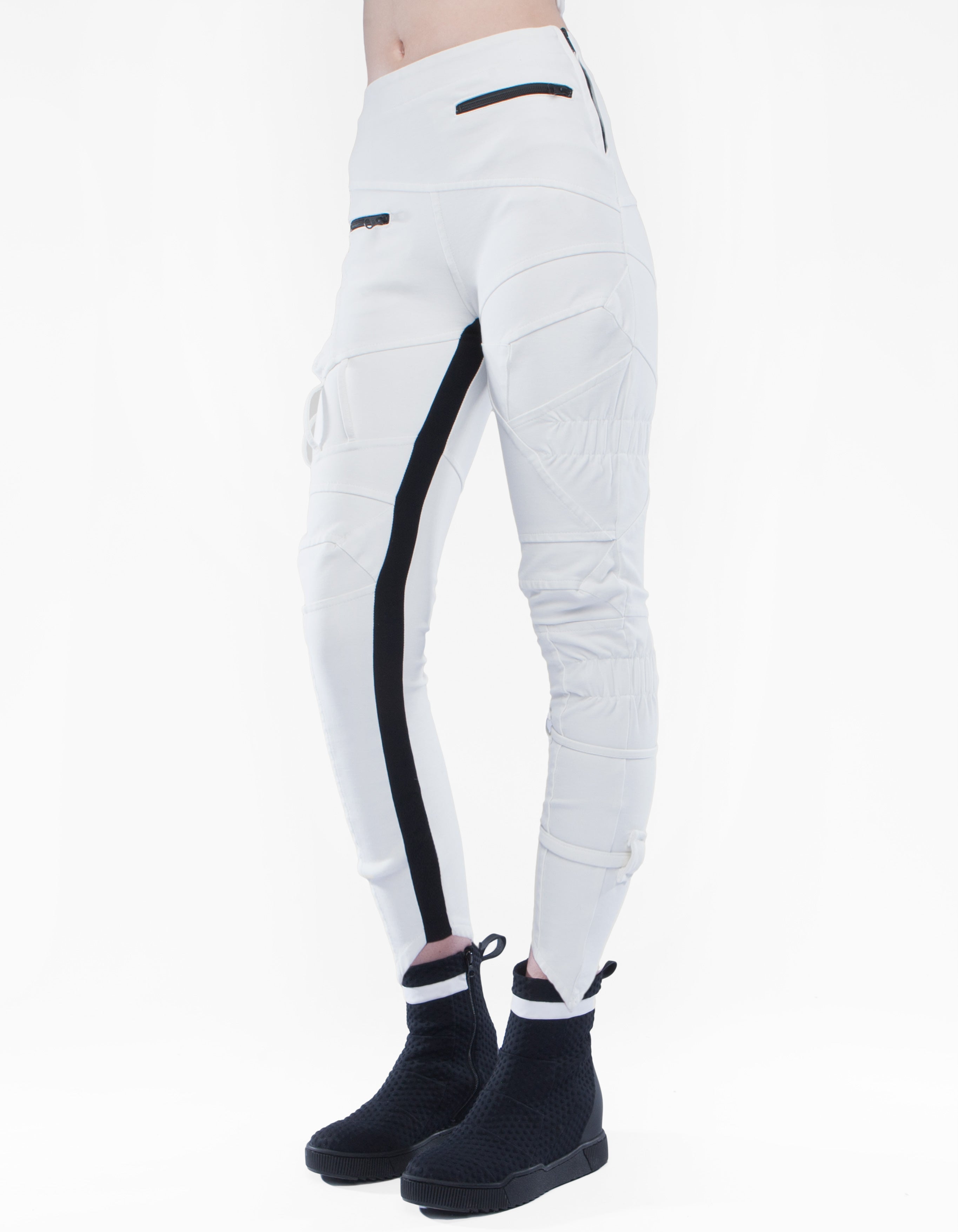 detailed futuristic high waist fitted trousers