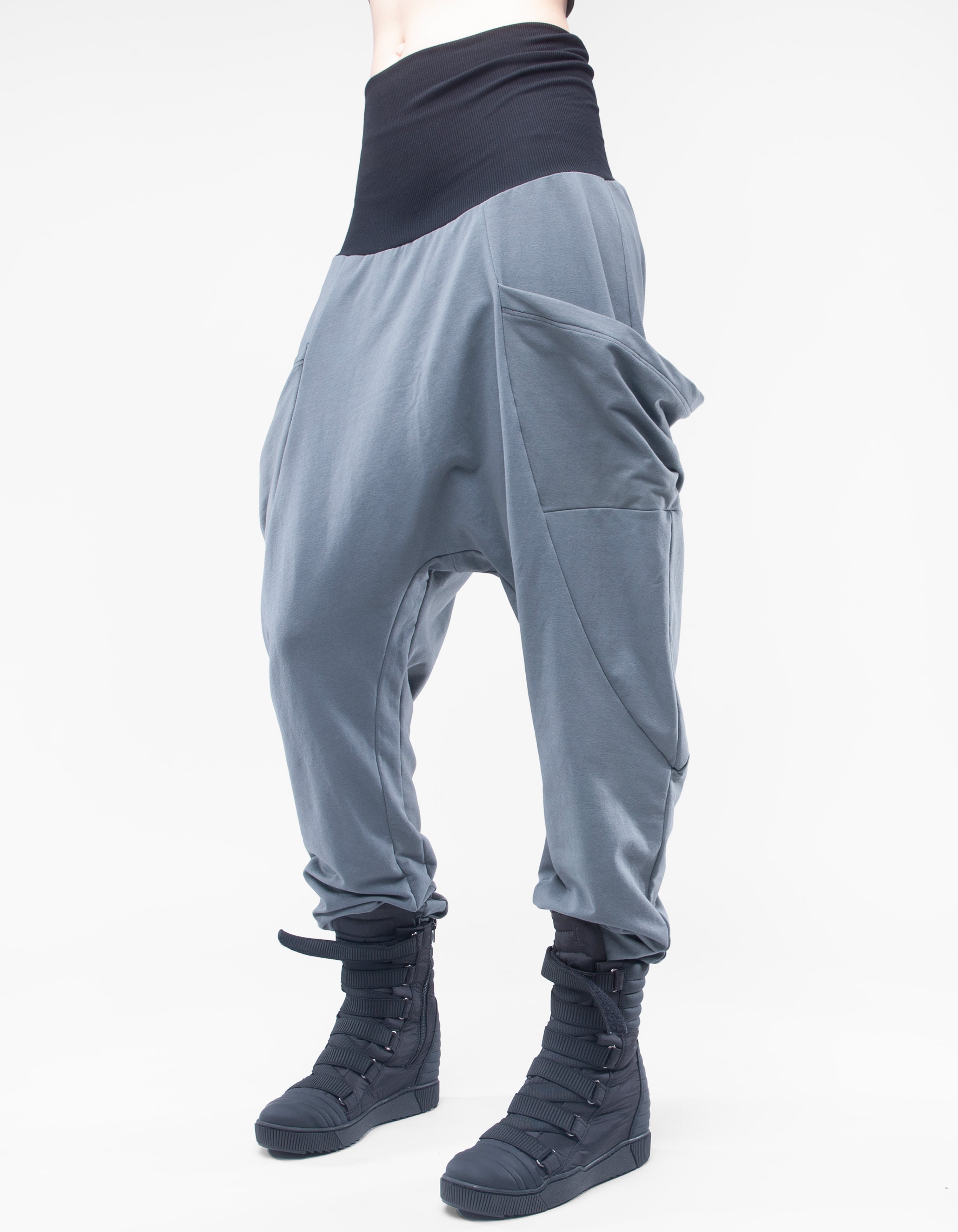 super baggy cozy high waist trousersopen side pockets and a zipped pocket