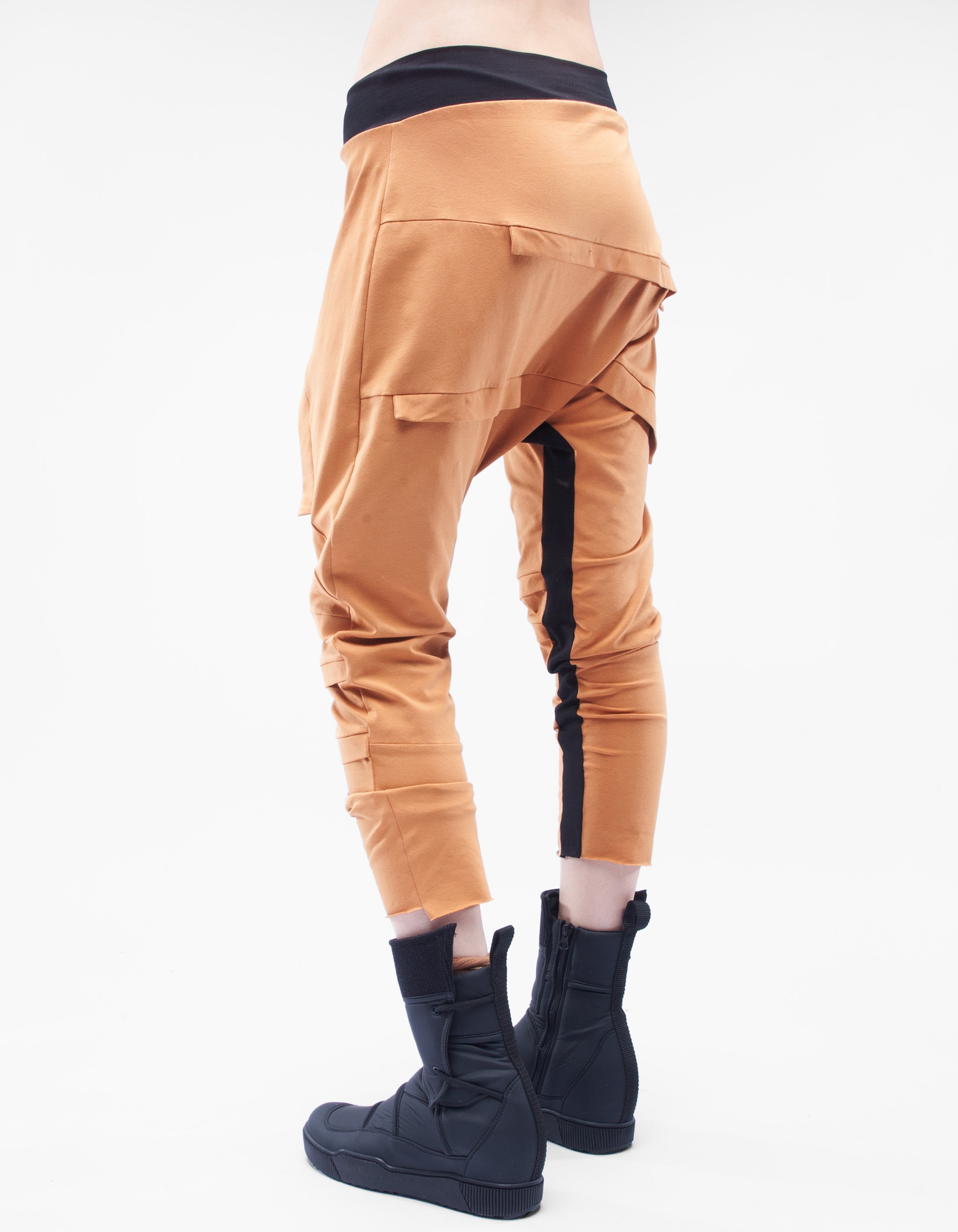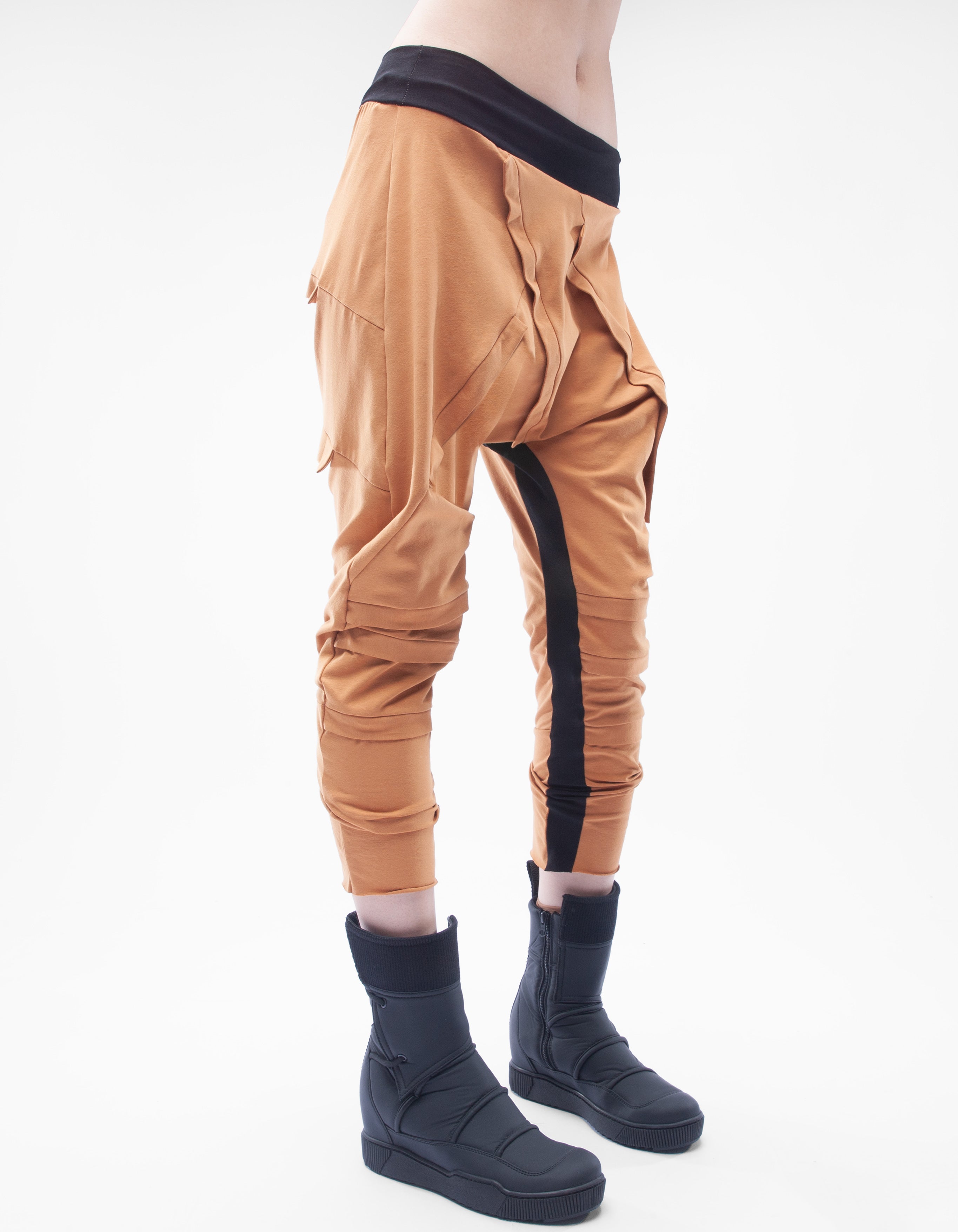 soft cozy elastic cotton baggy pants with elastic rib belt