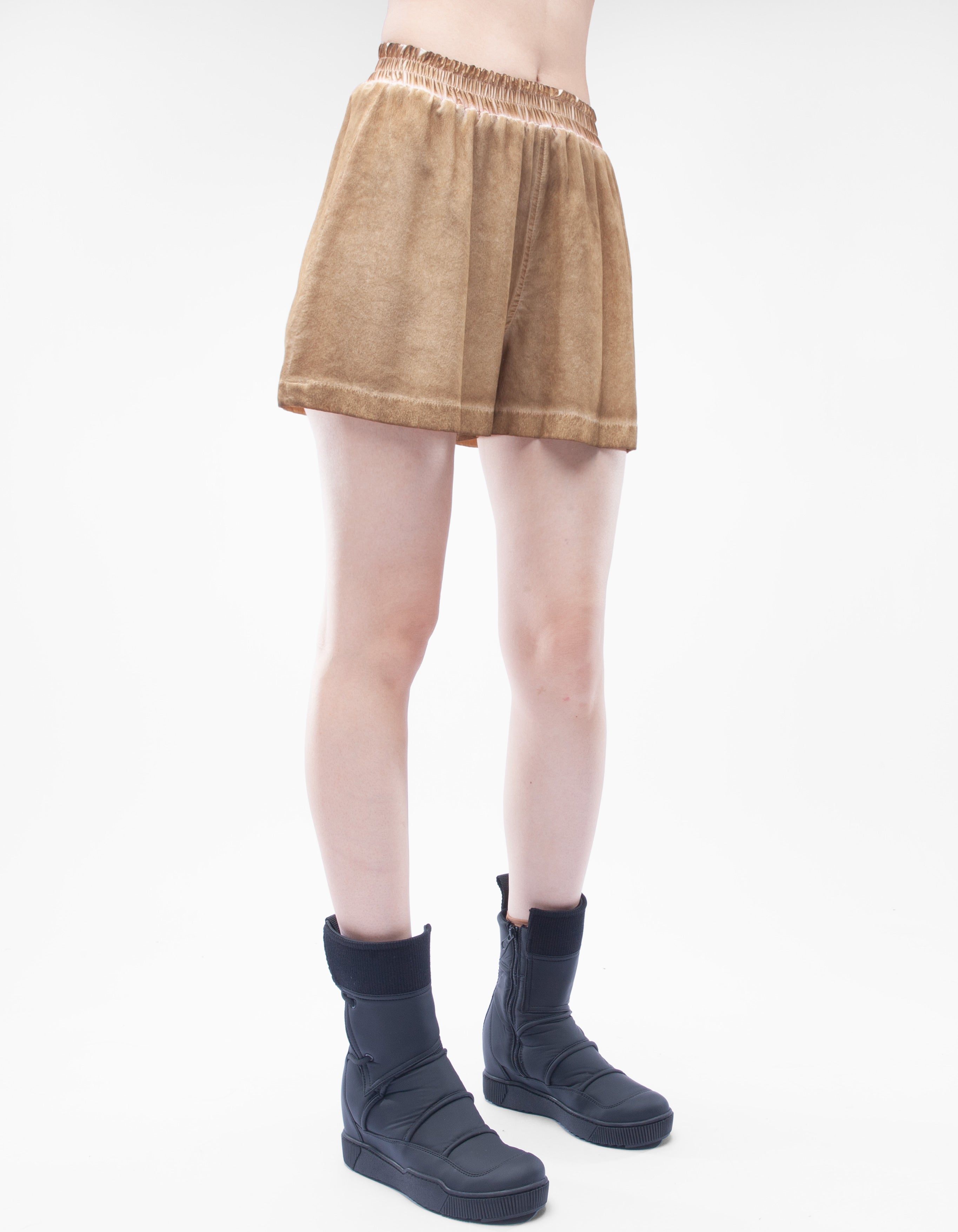 detailed wide piece dyed high quality crepe short trousers with elastic belt