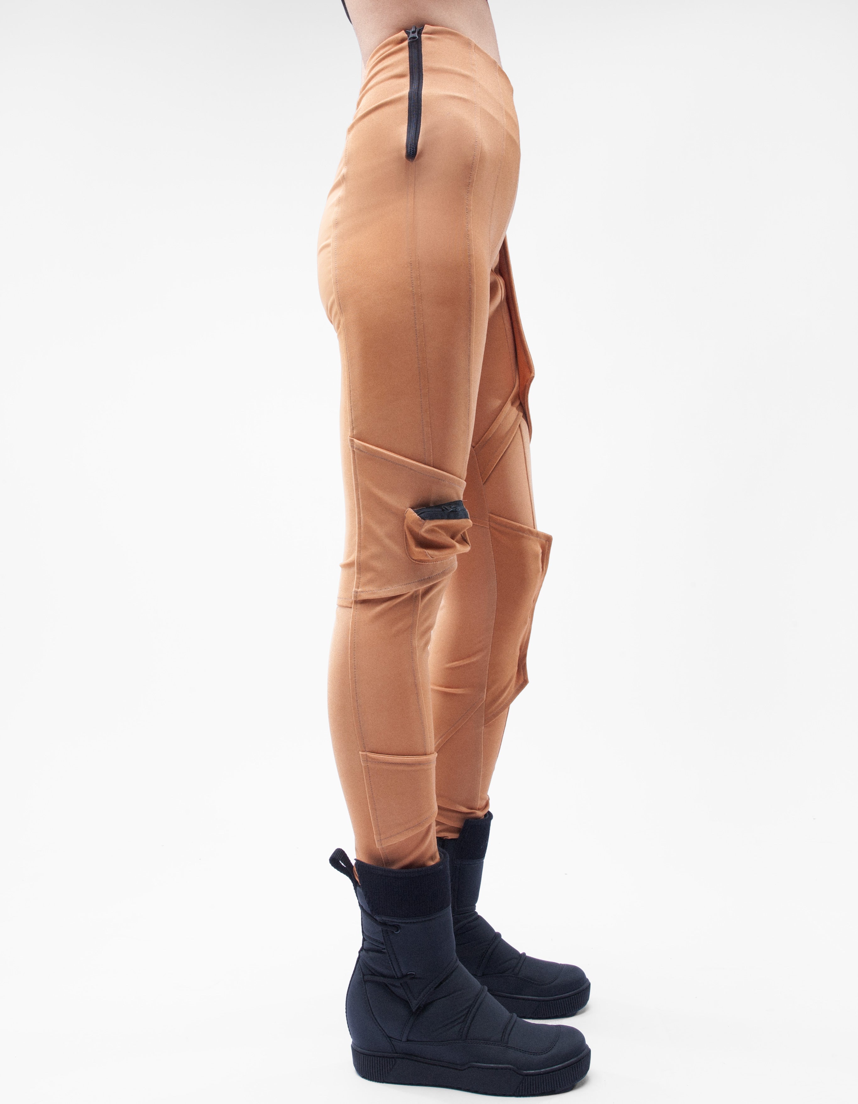 detailed high waist fit trousers with pad elementsclosing by zipper, zipped pocketsmooth cool touch
