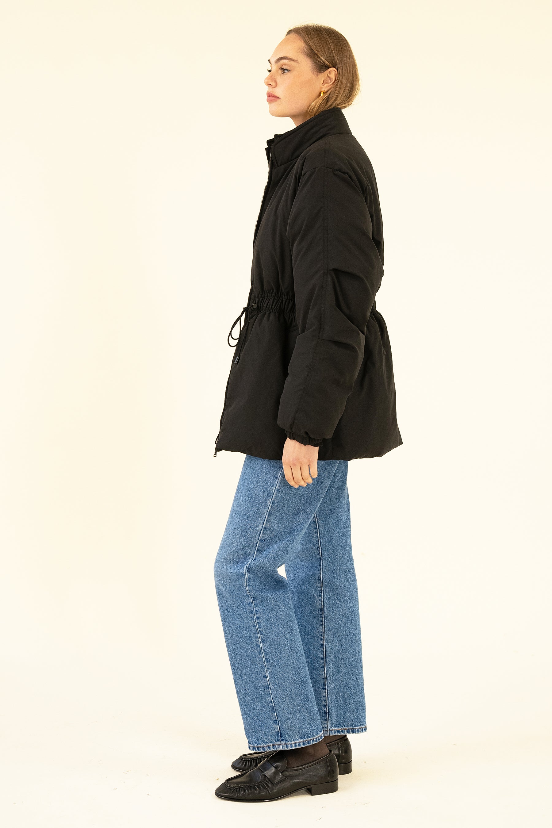 An ode to the 80's, our new version of Cadence is made from Recycled Polyester and is thigh length. She cinches at the waist with an adjustable cord, is so warm and comfortable and has a double ended zip opening.
