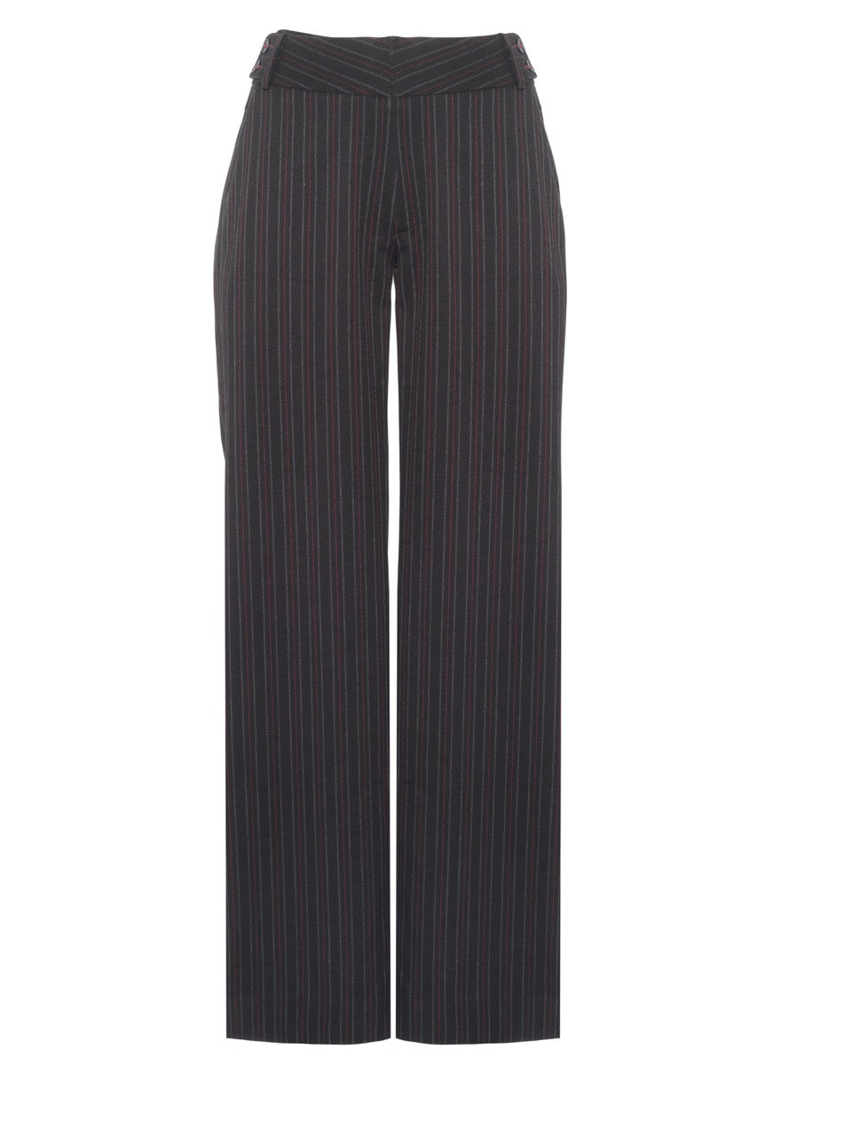 Features a bold waistband, invisible hook and eye closure, functional front pockets and a v-shaped back yolk with welt pockets.